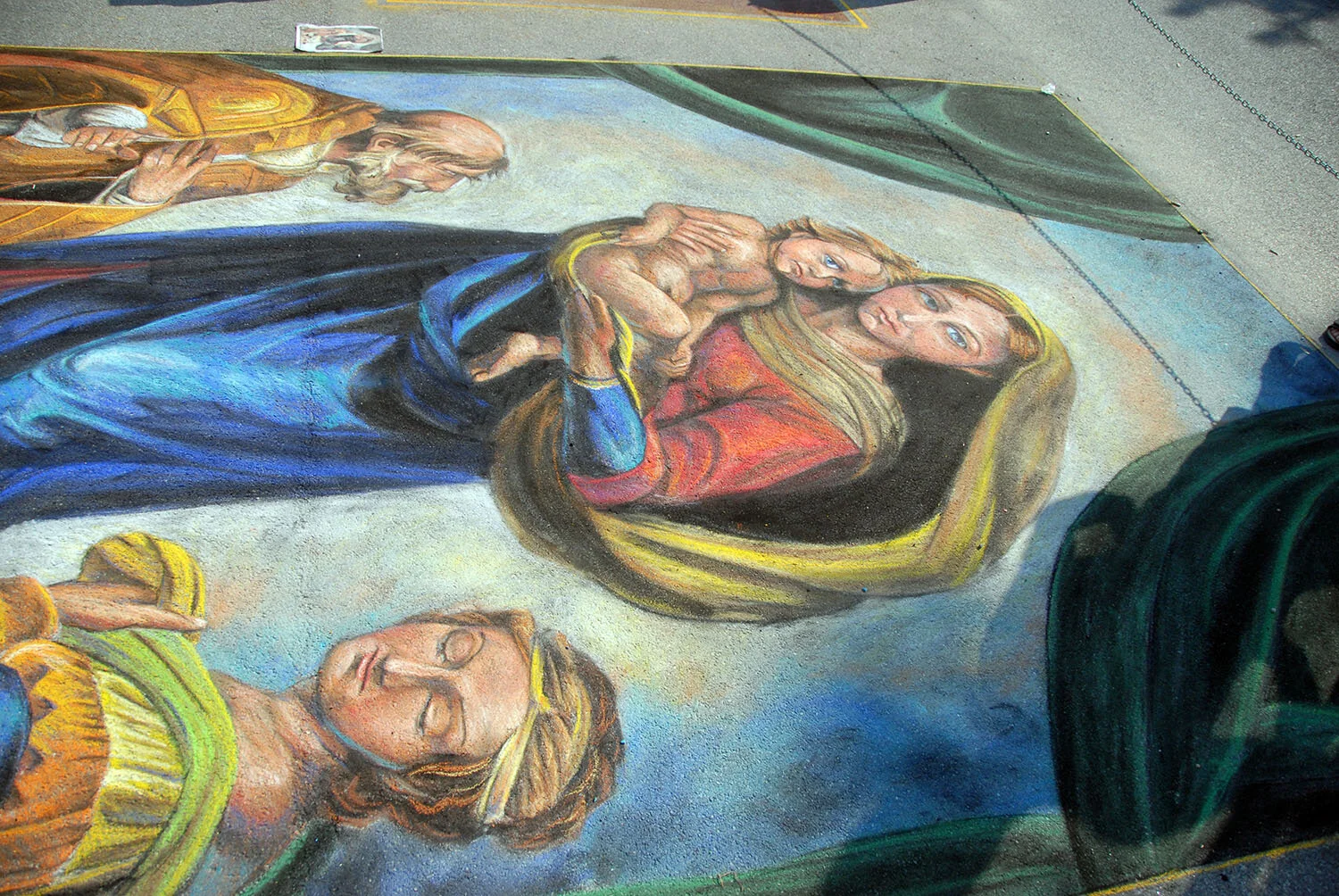 Mr. Michael Kirby recreated the Madonna Sistina by Raffaello in the Grazie di Curtatone Madonnari Festival. Mr. Kirby has participated in this yearly festival since 1996. The Madonnari Festival awards Mr. Michael Kirby the title of Maestro Madonnaro.