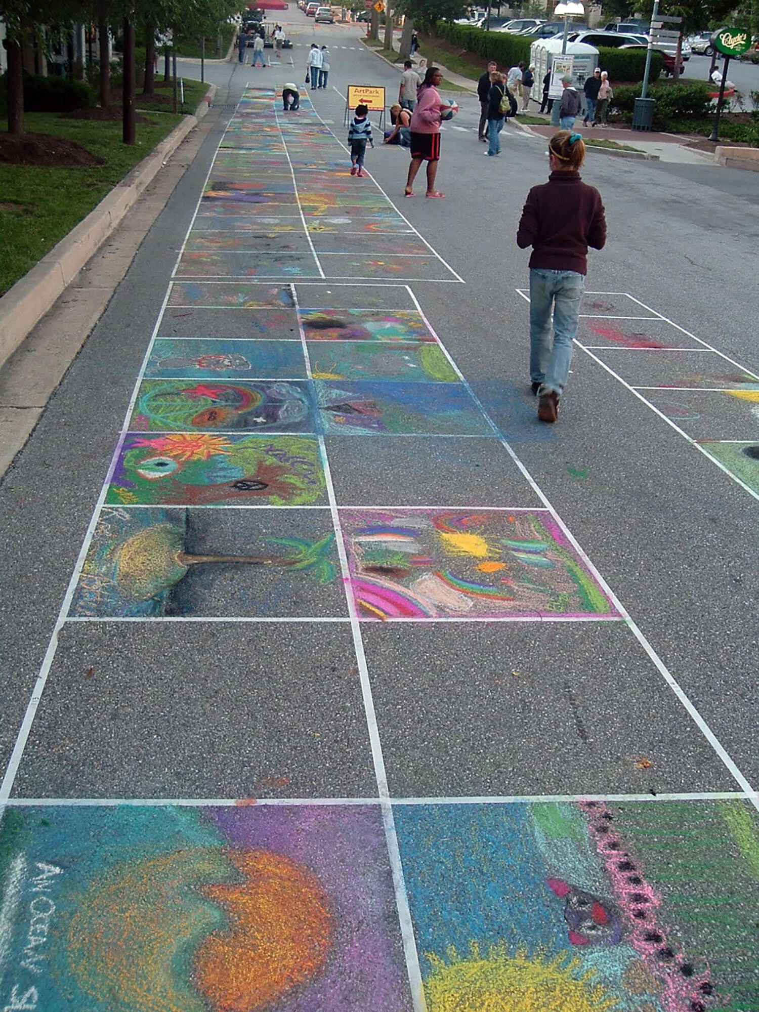 Murals of Baltimore and Mr. Michael Kirby was contracted to create the first Chalk Art Festival in Columbia, Maryland for the Columbia Festival for the Arts. Mr. Kirby was the featured artists and conducted a series of workshops for students of all ages. Mr. Kirby has completed numerous 3D chalk drawings and 3D street paintings for various festivals and organizations throughout Maryland. Mr. Kirby provides workshops and classes at festivals and helps organize events for the communities.
