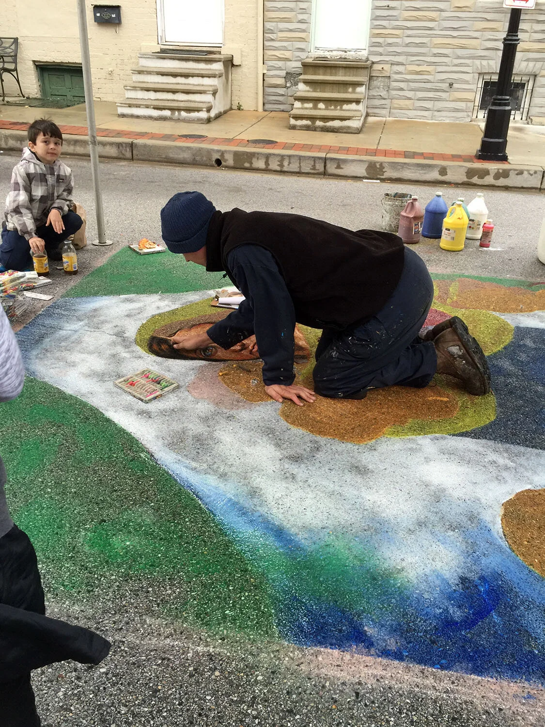 Mr. Kirby was the featured artists and conducted a series of workshops for students of all ages. Mr. Kirby has completed numerous 3D chalk drawings and 3D street paintings for various festivals and organizations throughout Maryland. Mr. Kirby provides workshops and classes at festivals and helps organize events for the communities.